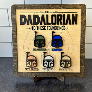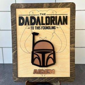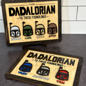 Looking for the perfect gift for Dad? Look no further than our “Dadalorian” sign! This beautiful piece of home decor is made of 3 layers of laser-cut wood, with a dark walnut-stained frame that will look great in any room.
