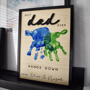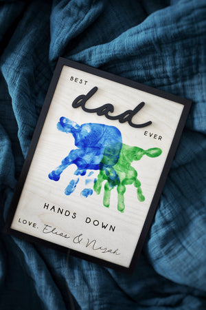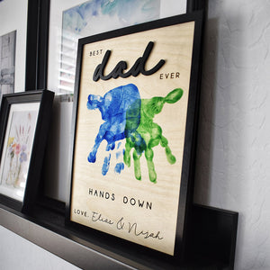 "Hands Down" Engraving: Just below the handprint section, you'll find the engraved phrase "hands down," adding a playful, endearing, and dad-pun-approved element to the design.