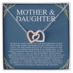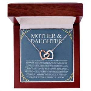 MOTHER & DAUGHTER WE MAY BE APART INTERLOCKING HEARTS NECKLACE