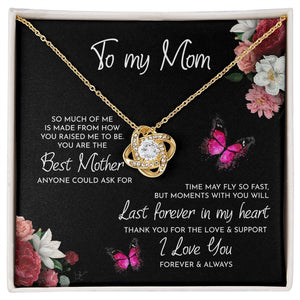 TO MY MOM TIME MAY FLY LOVE KNOT NECKLACE