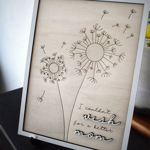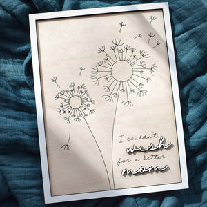 Engraved Dandelion Design: The highlight of this sign is the beautifully engraved dandelions, with whisps floating through the air, ready to carry your love and wishes to the special mom in your life. It's a symbol of hope, dreams, and the unbreakable bond between a mother and her children or grandchildren.