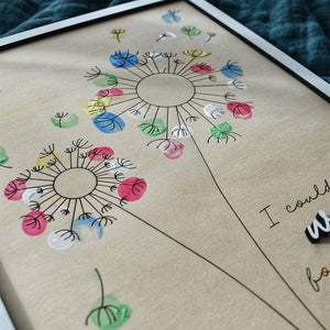 Handprint Section: Beneath the main message, we've carefully crafted an open area where your little ones can place their painted fingerprints throughout the whispy dandelions, creating a special and personal touch that truly makes this sign one-of-a-kind.