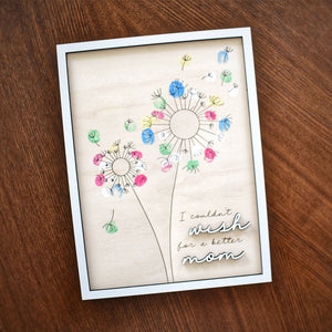 Upon receiving your sign, gather your family members and let them place their painted fingerprints on the dandelions, filling the whisps with color, love, and a piece of themselves. It's a beautiful activity that turns this piece into a cherished keepsake.